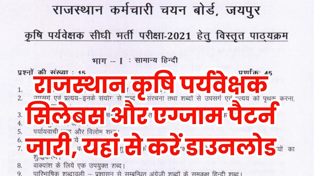 Rajasthan Agriculture Supervisor Syllabus 2025 In Hindi
